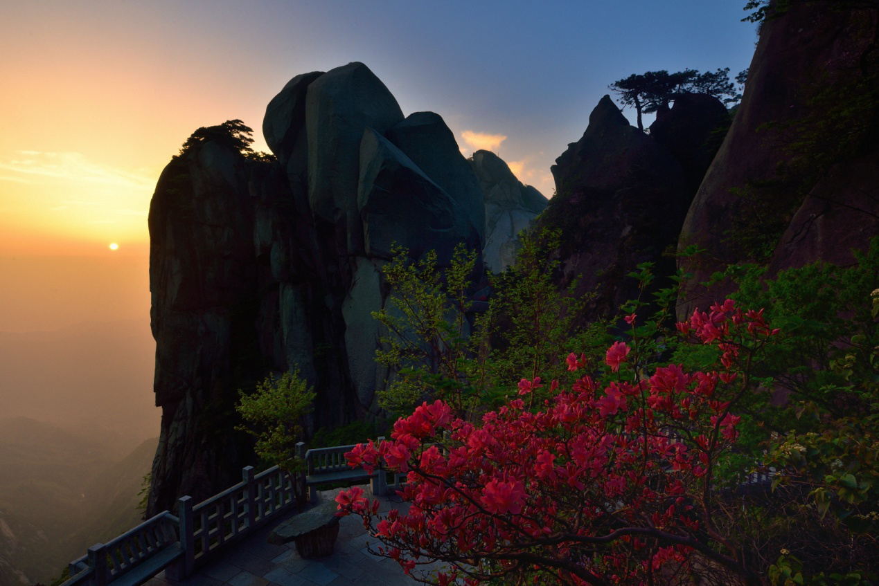 4月中下旬,在海拔1000米以下地带,映山红争相绽放,满山红紧接着争奇斗艳。5月初,分布于海拔1200米以上的万余株云锦杜鹃进入盛开期,景区花团锦簇,赏心悦目,为天柱山平添了几分妖娆与妩媚,让人如入画境。